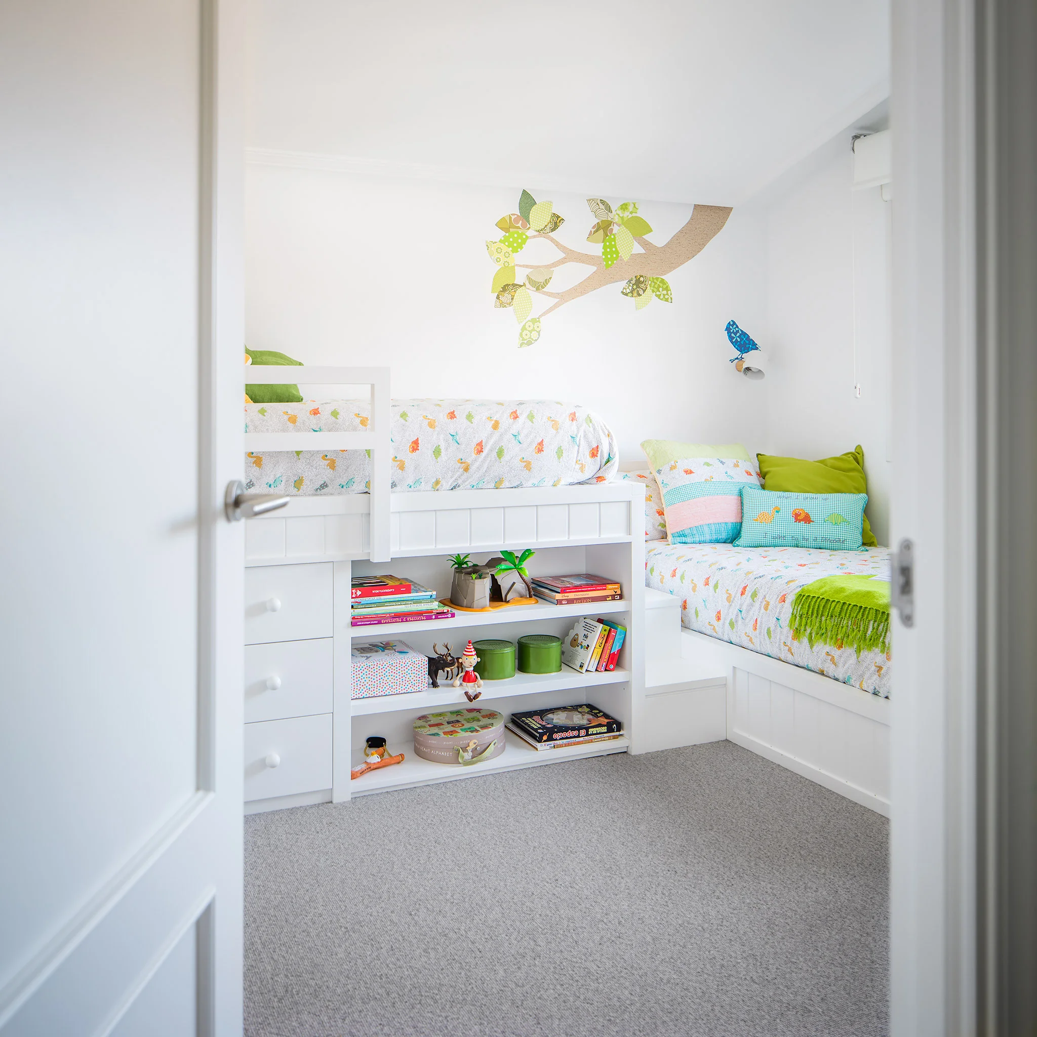 Apostamos por el blanco como color protagonista combinándolo en ocasiones con el gris, ya que esta combinación resulta ideal para incorporar luego el toque de color gracias a los diferentes detalles decorativos como telas, cojines, mantas, ropa de cama..., etc. Nos decantamos por amarillos, verdes intensos y azules hasta conseguir la estética perfecta que los clientes deseaban.